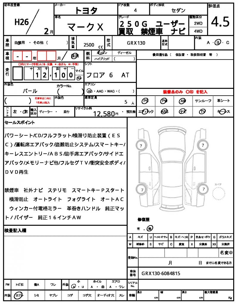 | VIN/Serial No. | GRX130-6084815 |