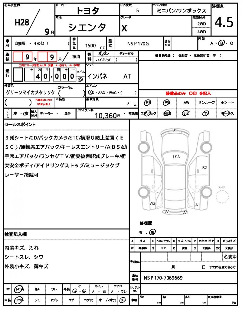 | VIN/Serial No. | NSP170-7069669 |