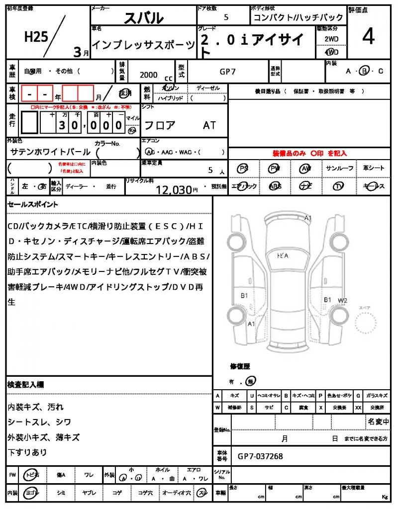 | VIN/Serial No. | GP7-037268 |