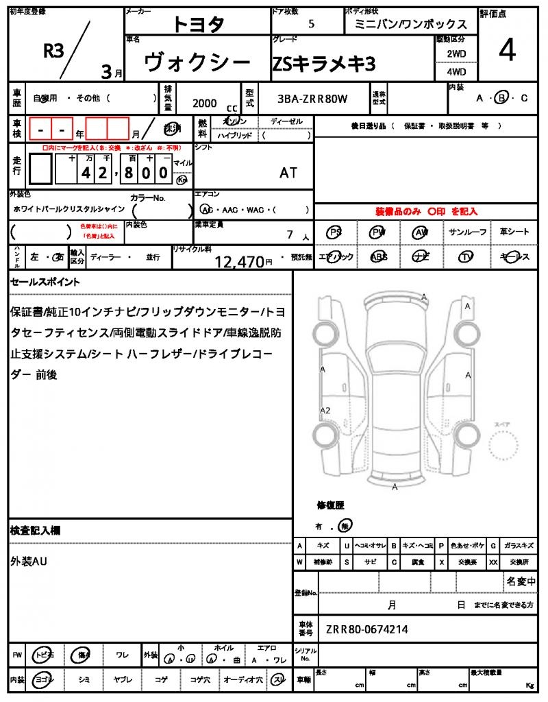 | VIN/Serial No. | ZRR80-0674214 |