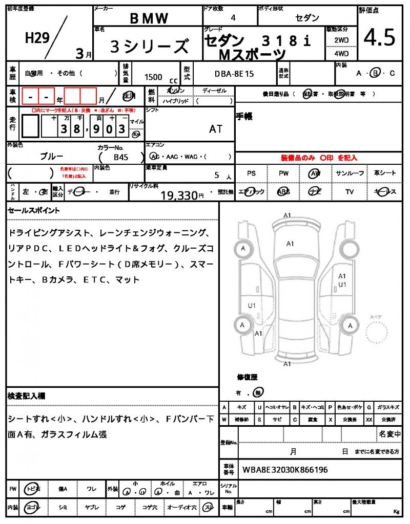 | VIN/Serial No. | WBA8E32030K866196 |