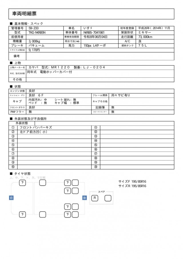 | VIN/Serial No. | NKR85-7041981 |