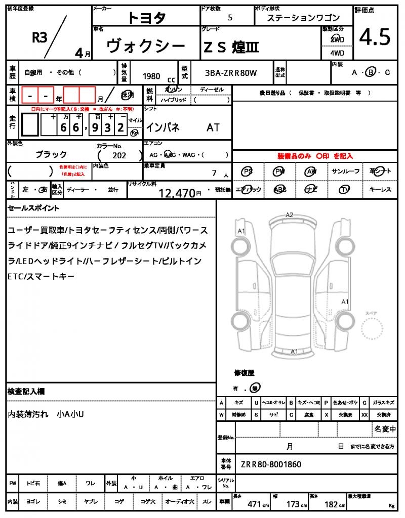 | Model code | 3BA-ZRR80W |