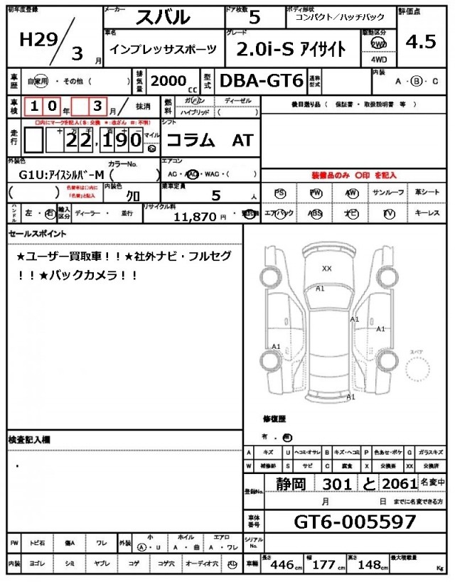 | VIN/Serial No. | GT6-005597 |