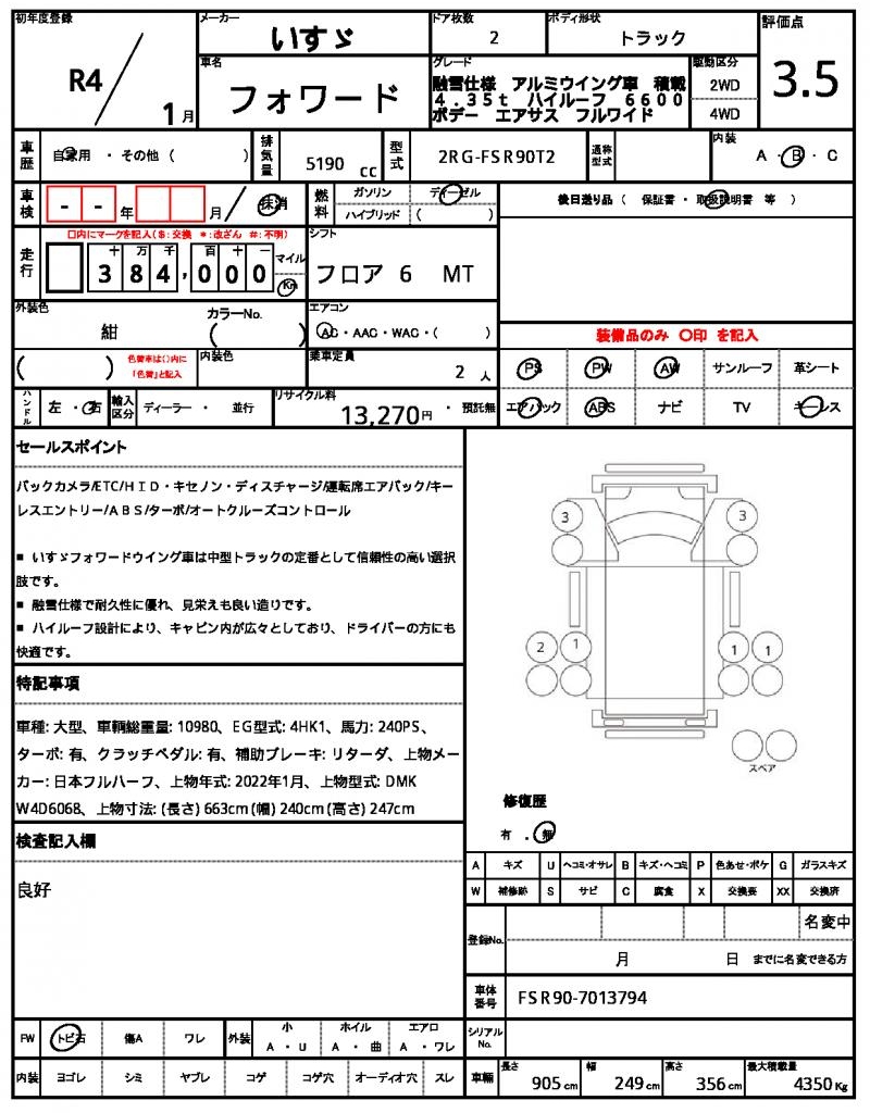 | VIN/Serial No. | FSR90-7013794 |
