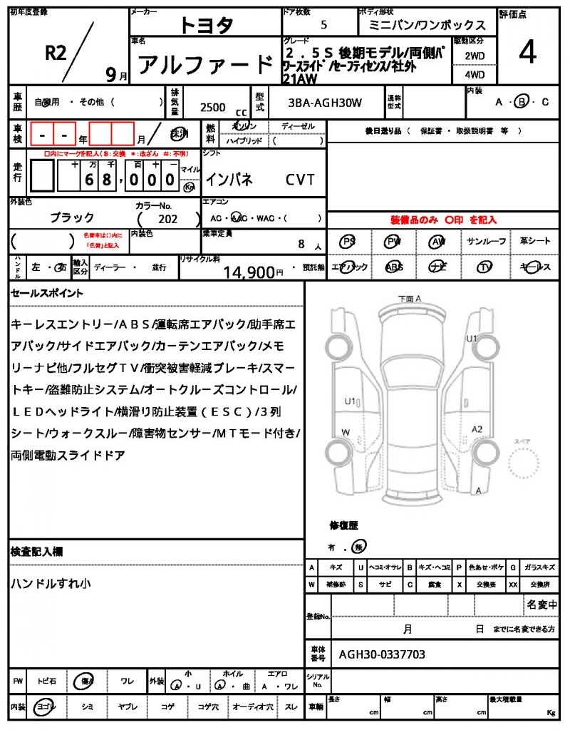 | VIN/Serial No. | AGH30-0337703 |