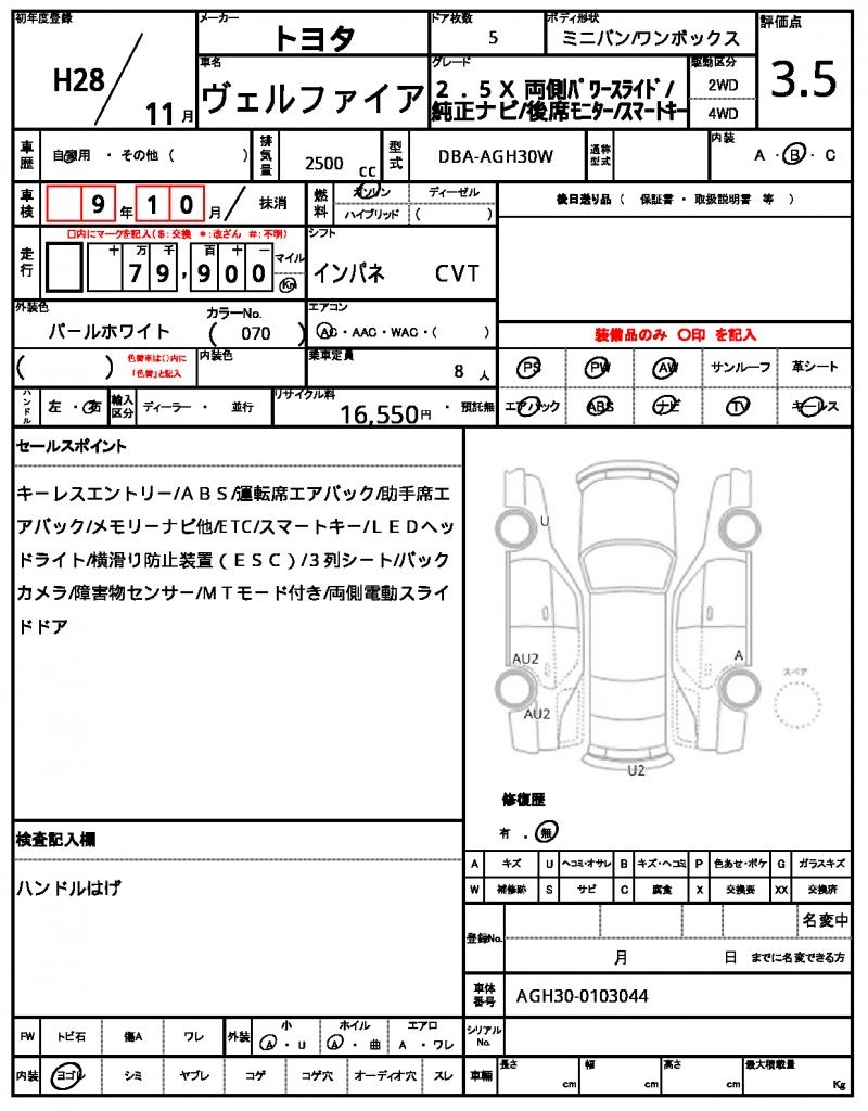 | VIN/Serial No. | AGH30-0103044 |