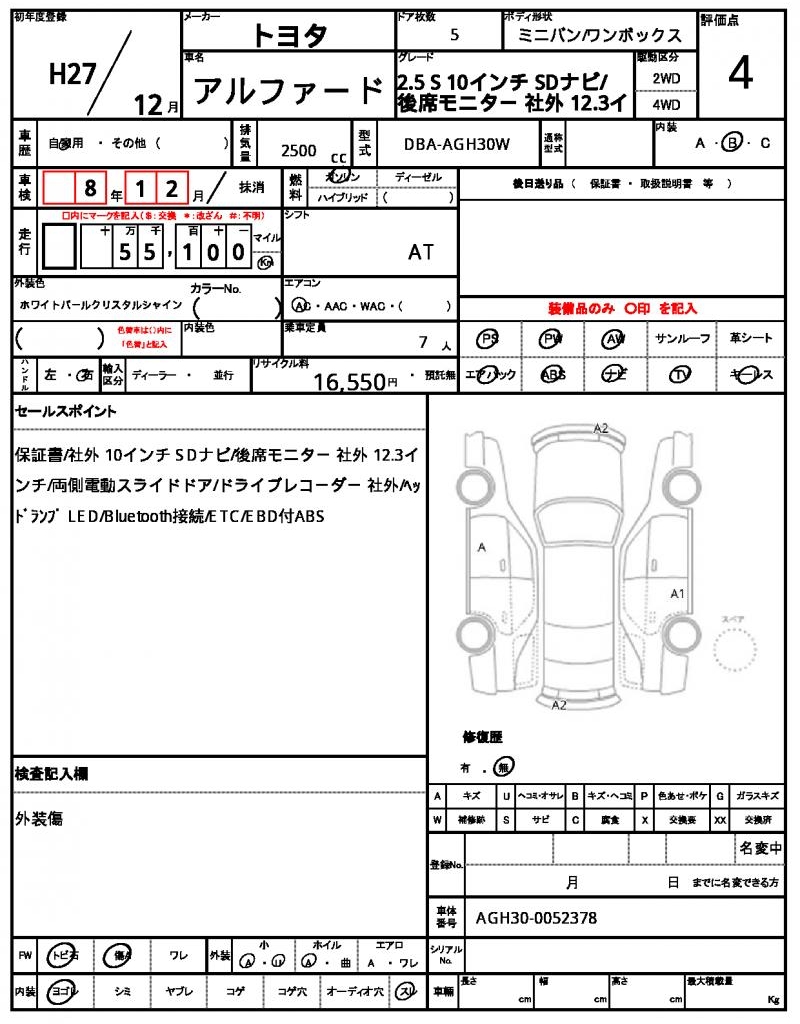 | VIN/Serial No. | AGH30-0052378 |