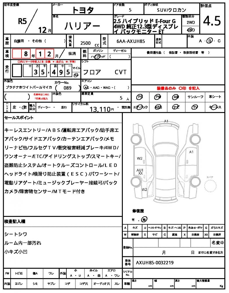 | VIN/Serial No. | AXUH85-0032219 |