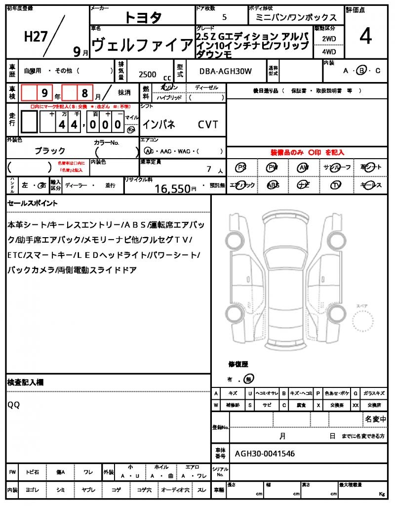 | VIN/Serial No. | AGH30-0041546 |