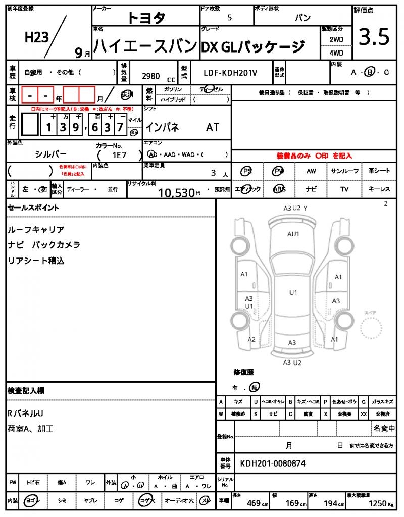 | VIN/Serial No. | KDH201-0080874 |