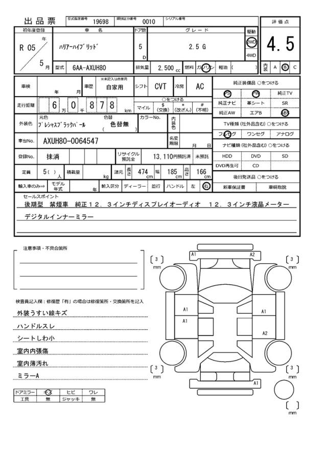 | VIN/Serial No. | AXUH80-0064547 |