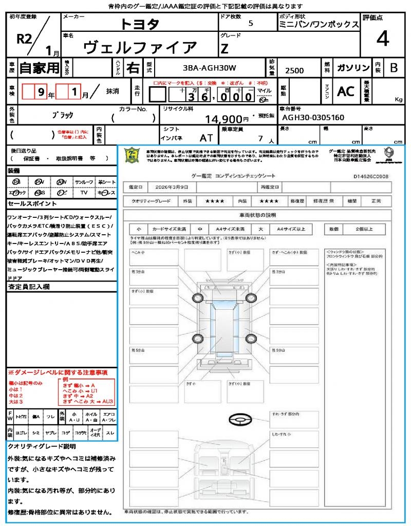 | Model code | 3BA-AGH30W |