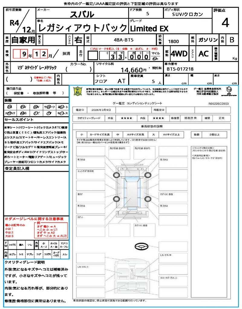 | VIN/Serial No. | BT5-017218 |