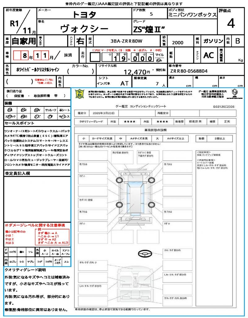 | Model code | 3BA-ZRR80W |