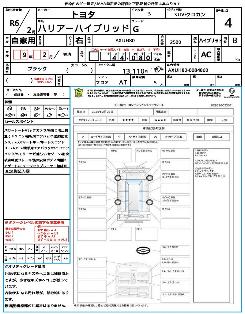| VIN/Serial No. | AXUH80-0084860 |