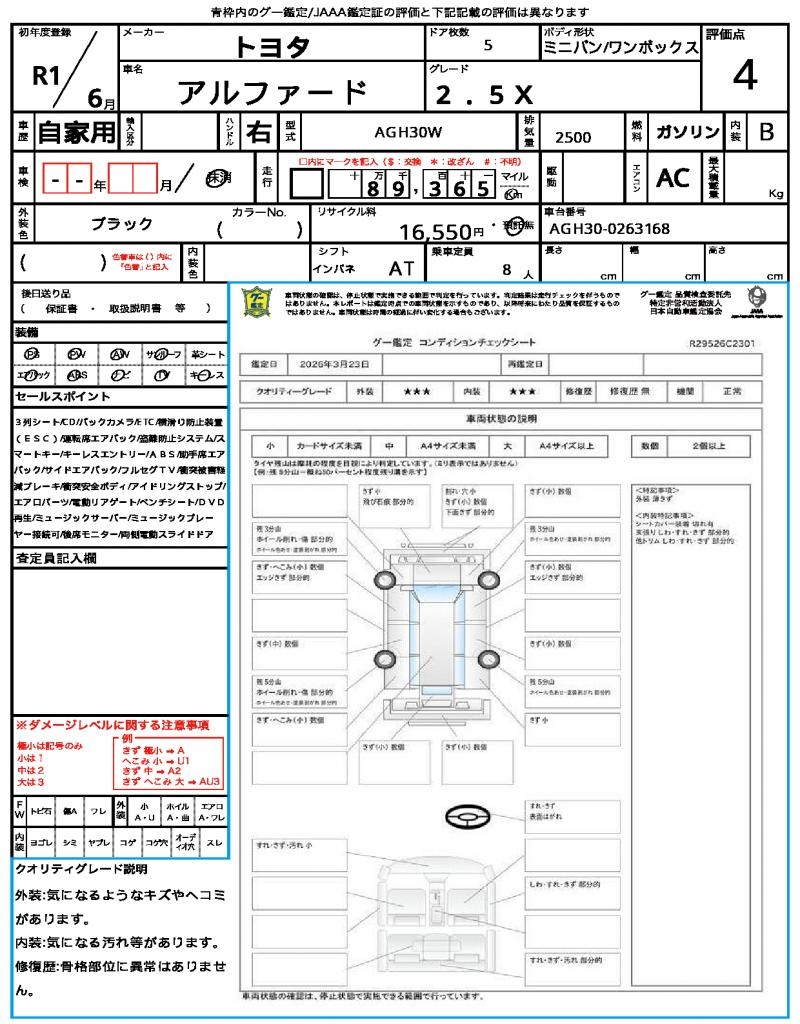 | VIN/Serial No. | AGH30-0263168 |