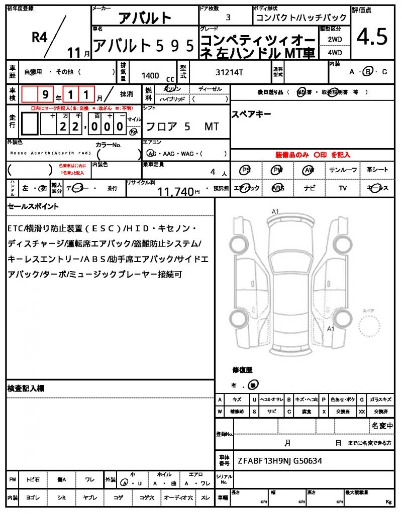 | VIN/Serial No. | ZFABF13H9NJG50634 |