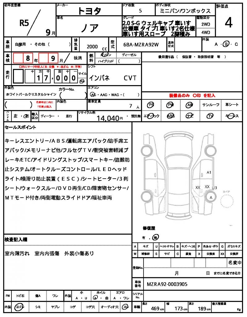 | VIN/Serial No. | MZRA92-0003905 |