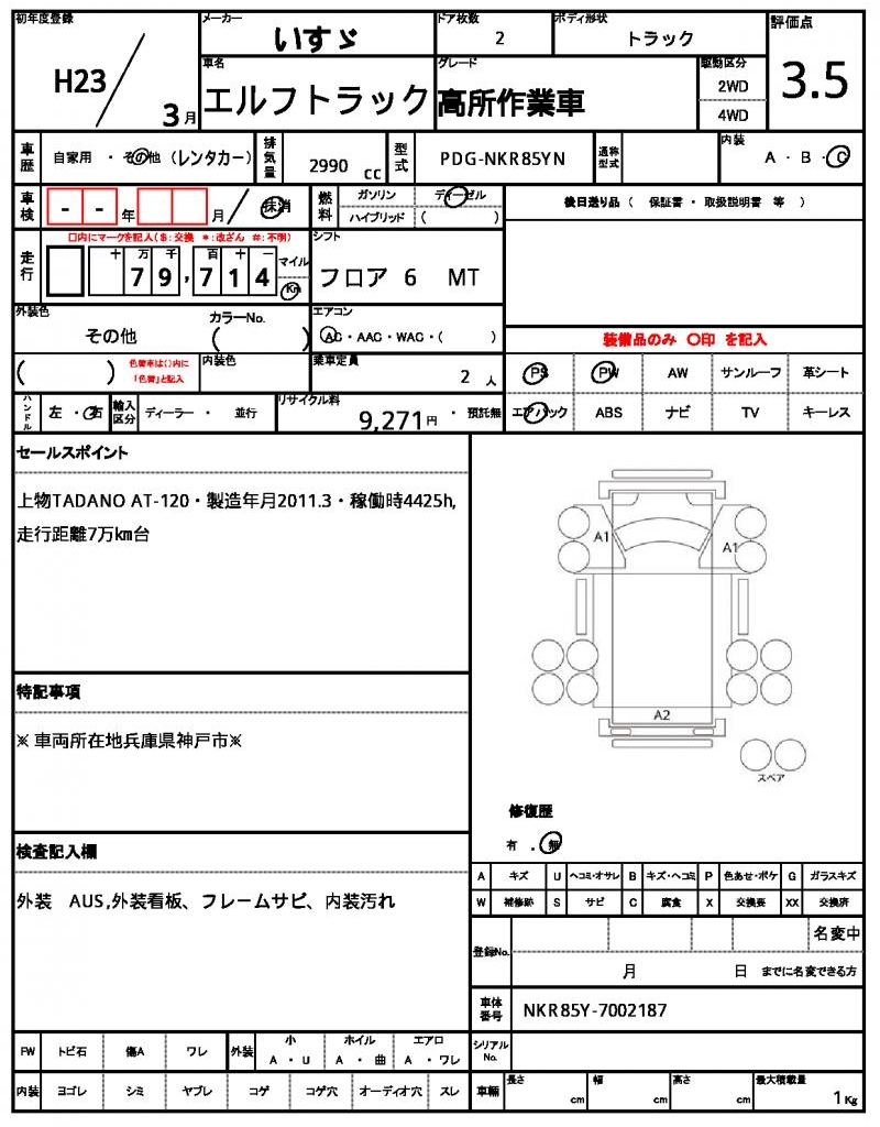 | VIN/Serial No. | NKR85Y-7002187 |