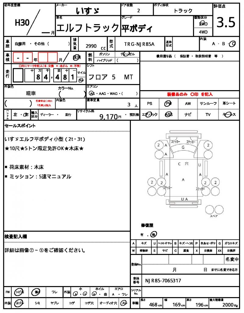 | VIN/Serial No. | NJR85-7065317 |