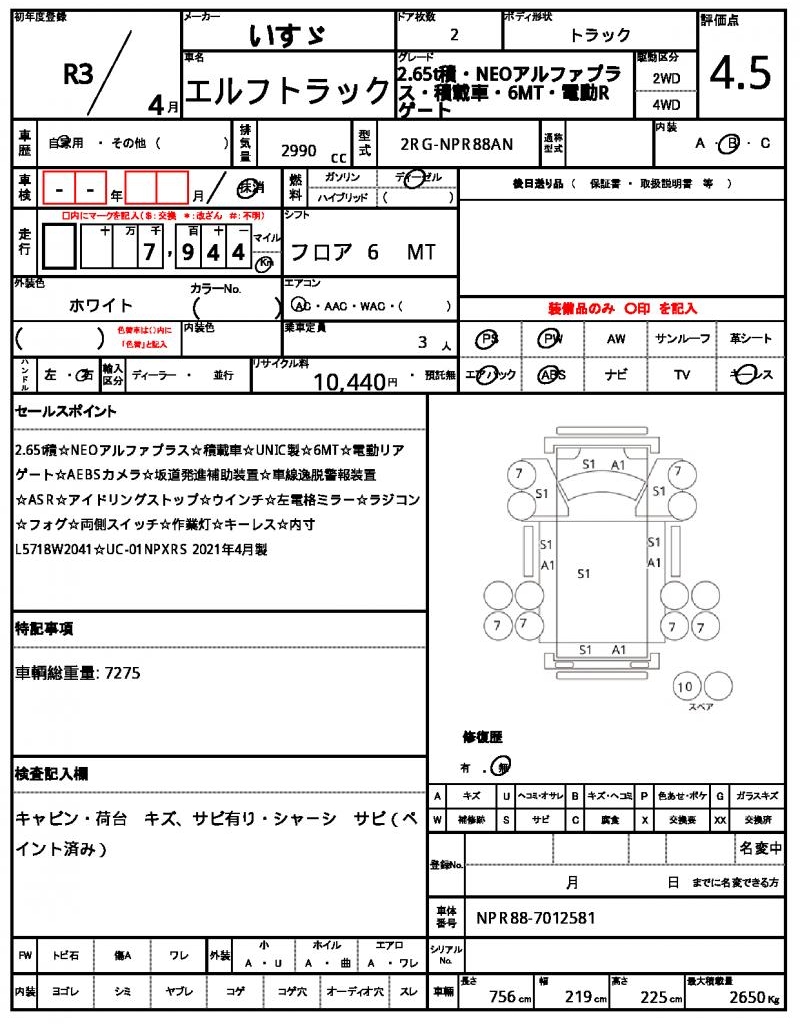 | VIN/Serial No. | NPR88-7012581 |