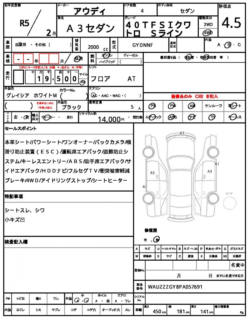 | VIN/Serial No. | WAUZZZGY8PA057691 |
