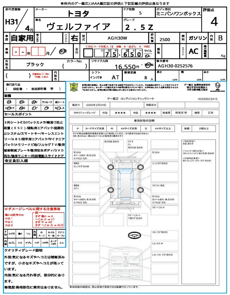 | VIN/Serial No. | AGH30-0252576 |