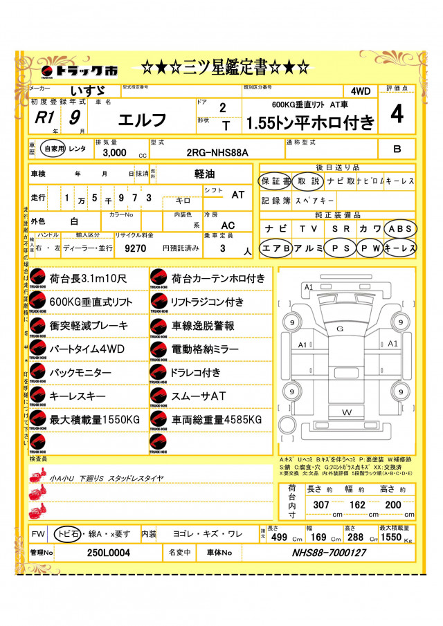 | VIN/Serial No. | NHS88-7000127 |