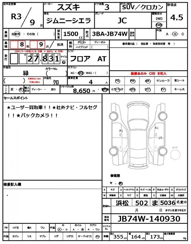 | VIN/Serial No. | JB74W-140930 |