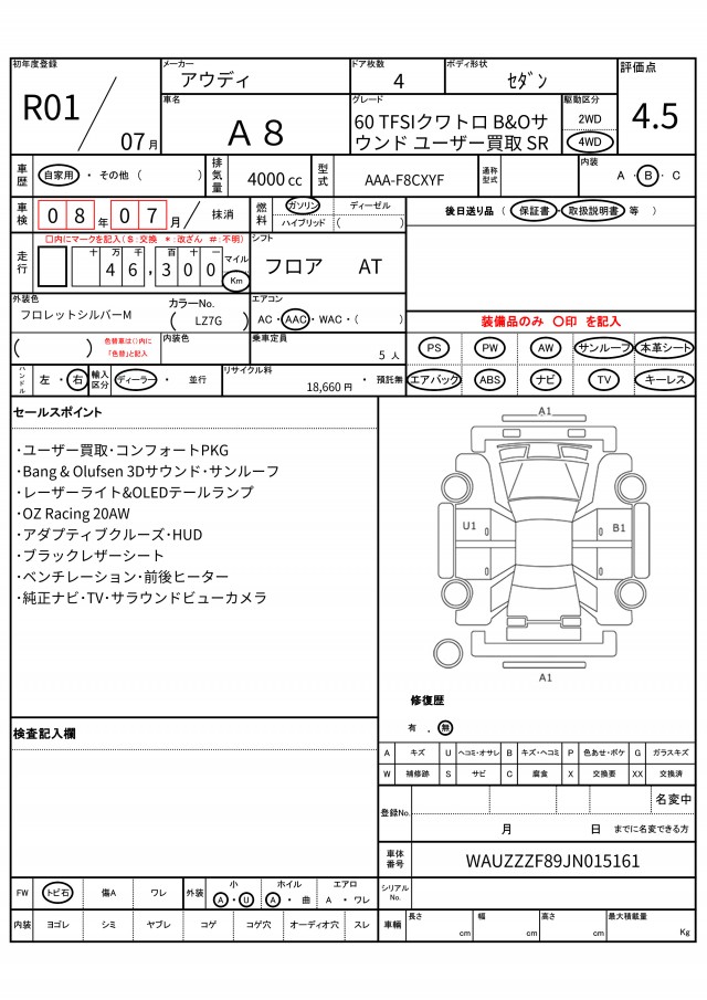 | VIN/Serial No. | WAUZZZF89JN015161 |
