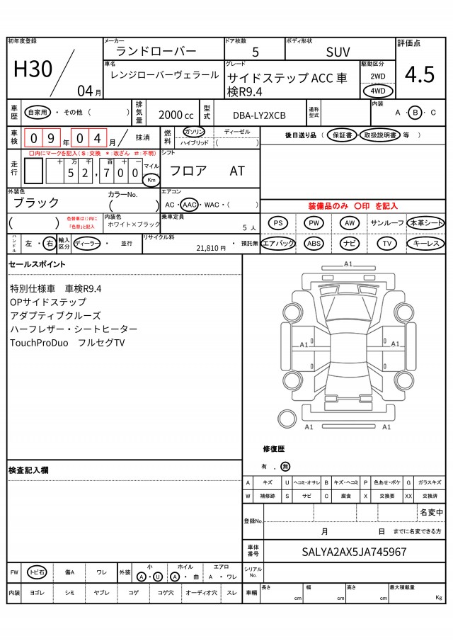VIN/Serial No. SALYA2AX5JA745967