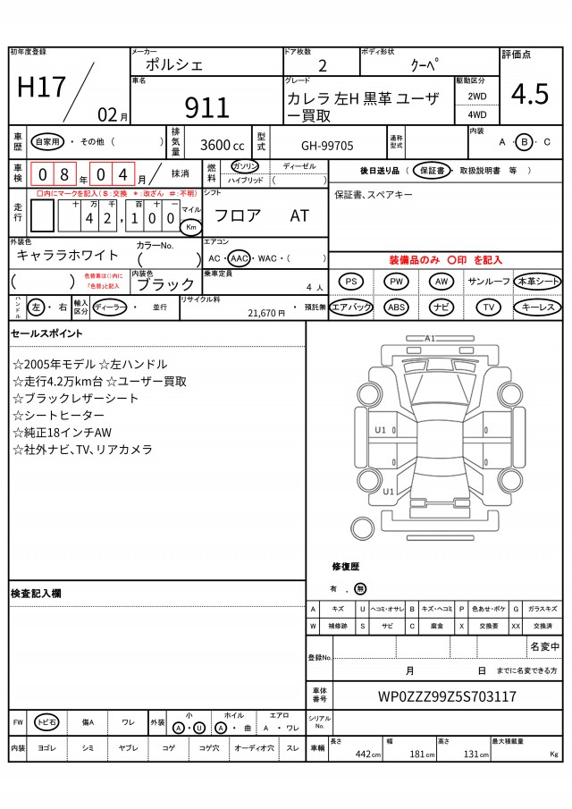 | VIN/Serial No. | WP0ZZZ99Z5S703117 |
