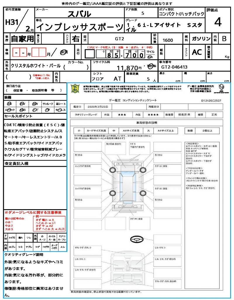 | Odometer | 85700km |