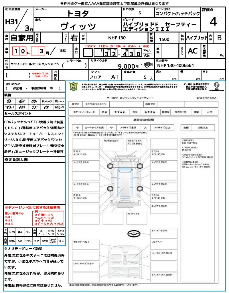 | VIN/Serial No. | NHP130-4006661 |