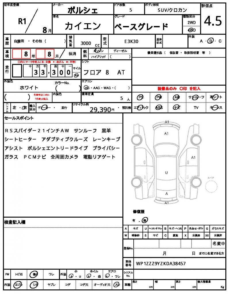 | VIN/Serial No. | WP1ZZZ9YZKDA38457 |