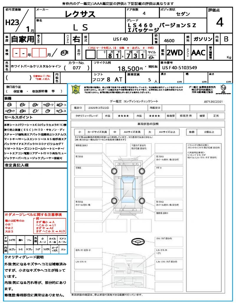| VIN/Serial No. | USF40-5103549 |