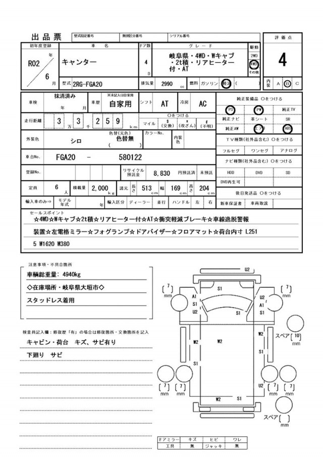 | VIN/Serial No. | FGA20--580122 |