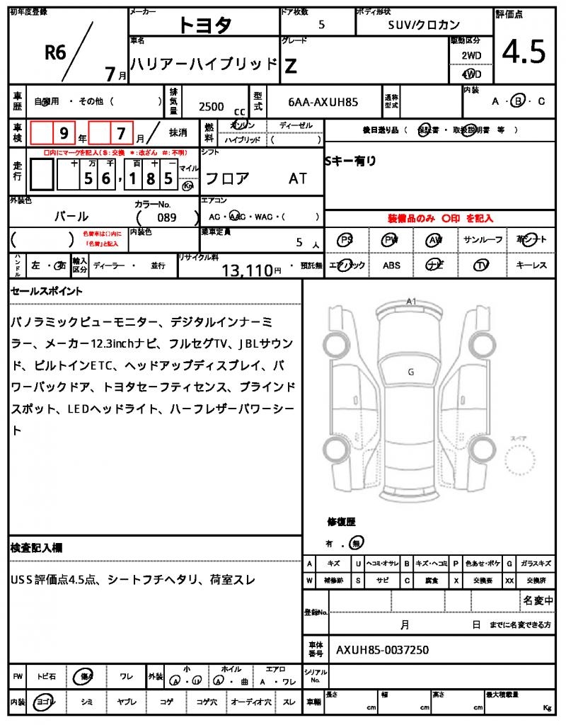 | VIN/Serial No. | AXUH85-0037250 |