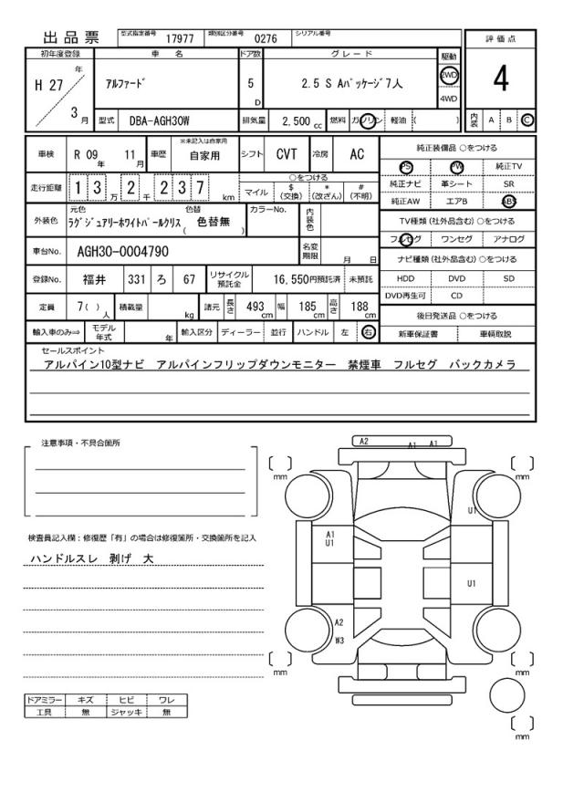 | VIN/Serial No. | AGH30-0004790 |