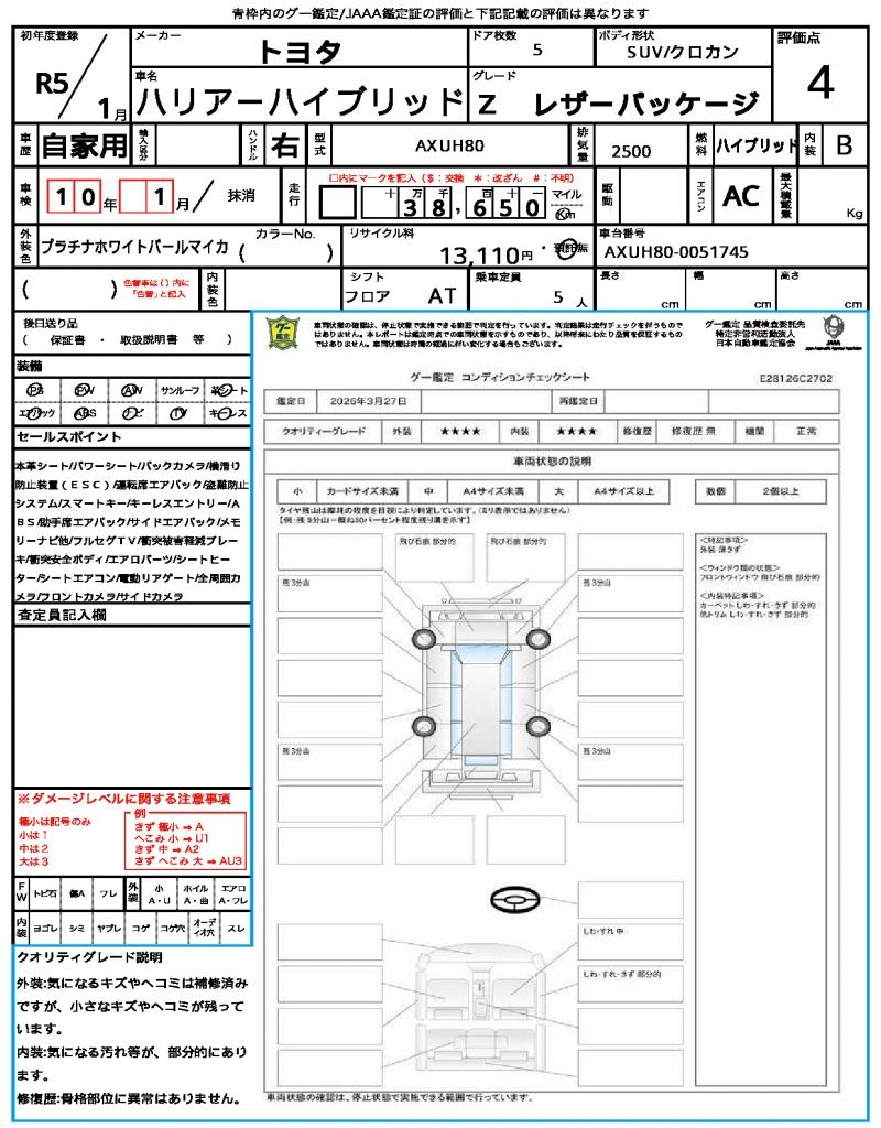 | VIN/Serial No. | AXUH80-0051745 |