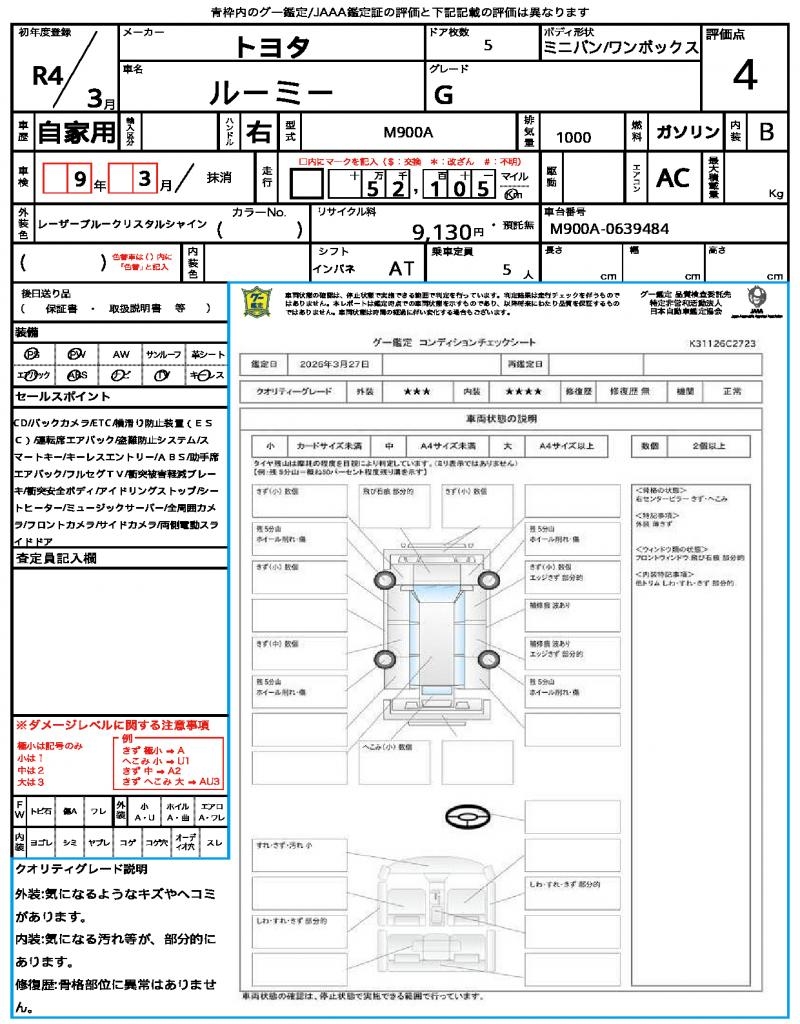 | Odometer | 52105km |