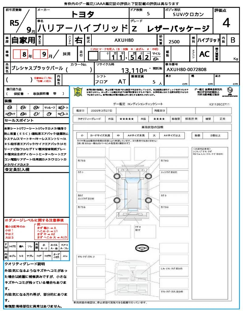 | VIN/Serial No. | AXUH80-0072808 |