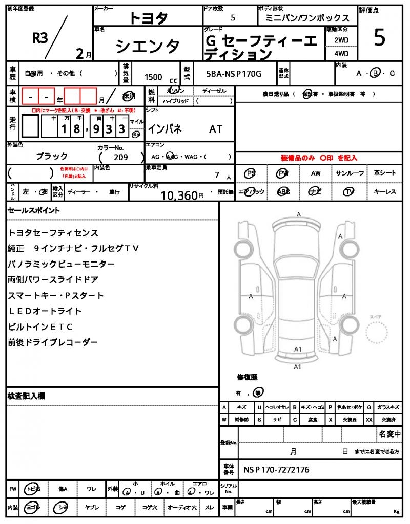| VIN/Serial No. | NSP170-7272176 |
