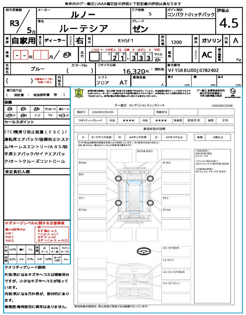 | VIN/Serial No. | VF15RBU0DJ0782402 |