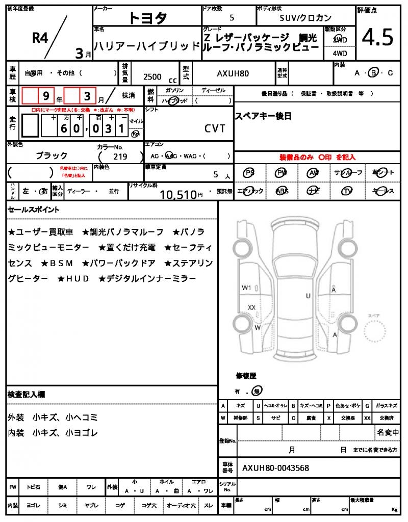 | VIN/Serial No. | AXUH80-0043568 |