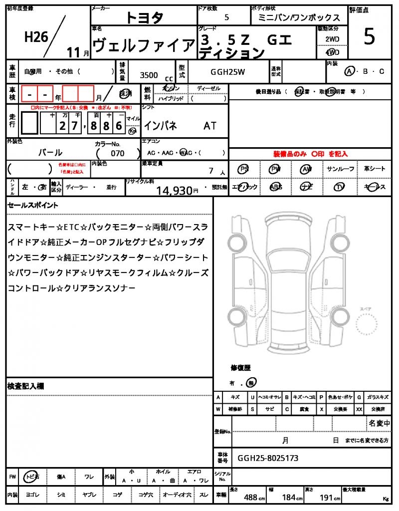 | VIN/Serial No. | GGH25-8025173 |