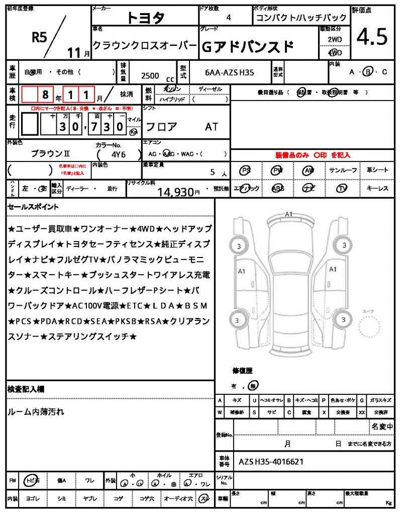 | VIN/Serial No. | AZSH35-4016621 |