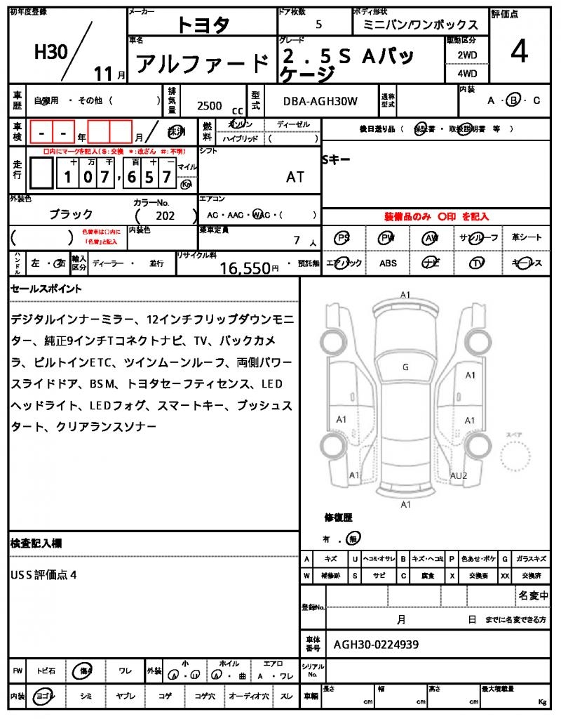 | VIN/Serial No. | AGH30-0224939 |