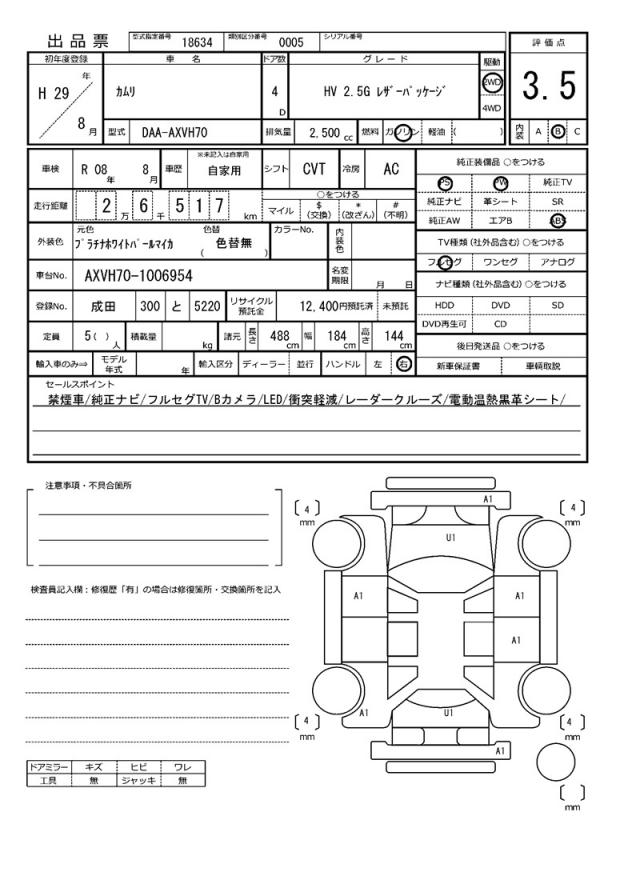 | VIN/Serial No. | AXVH70-1006954 |